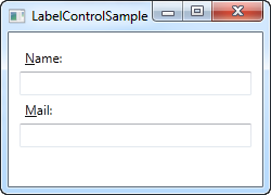 We use the Target property to connect the Label and the designated control. We use a standard WPF binding for this, using the ElementName property, all of which we will describe later on in this tutorial. The binding is based on the name of the control, so if you change this name, you will also have to remember to change the binding.