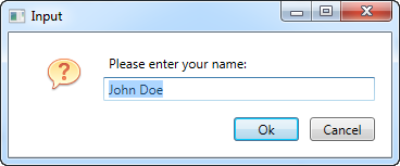 InputDialogSample inputDialog = new InputDialogSample("Please enter your name:", "John Doe");