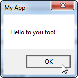 MessageBox.Show("Hello to you too!", "My App");