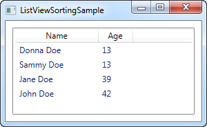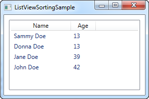 In the last chapter we saw how we could group items in the WPF ListView by accessing the View instance of the ListView and then adding a group description. Applying sorting to a ListView is just as easy, and most of the process is exactly the same. Let's try a simple example where we sort the user objects by their age: