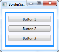 The above border is very discrete, but this can easily be changed by regulating the color and/or thickness. Because the BorderThickness property is of the Thickness type, you can even manipulate each of the border widths individually or by giving a value for the left and right and one for the top and bottom borders.