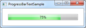 One thing that I really missed from the standard WPF ProgressBar is the ability to show a text representation of the progress as well as the progress bar. Fortunately for us, the flexibility of WPF makes this really easy for us to accomplish. Here's an example: