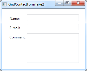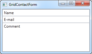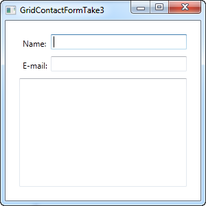 The first take on this task is very simple and will show you a very basic contact form. It uses three rows, two of them with Auto heights and the last one with star height, so it consumes the rest of the available space: