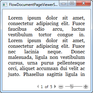 We'll start off with a simple example, where we can see how the FlowDocumentPageViewer control handles our Lorem Ipsum test text: