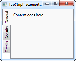 The TabStripPlacement can be set to Top, Bottom, Left and Right. However, if we set it to Left or Right, we get a result like this: